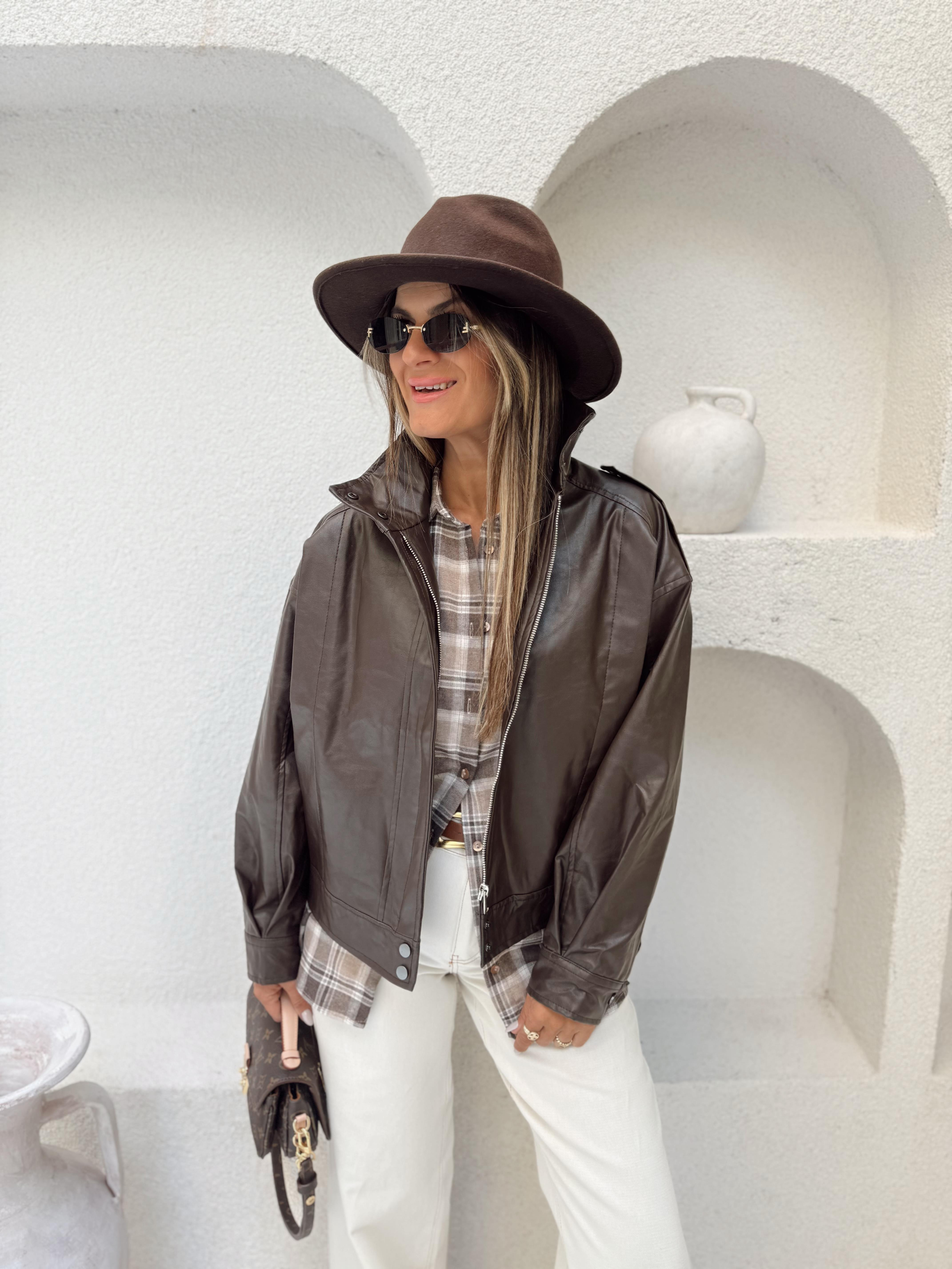 Nişantaşı Butik APOLETLİ BİKER DERİ CEKET ACI KAHVE