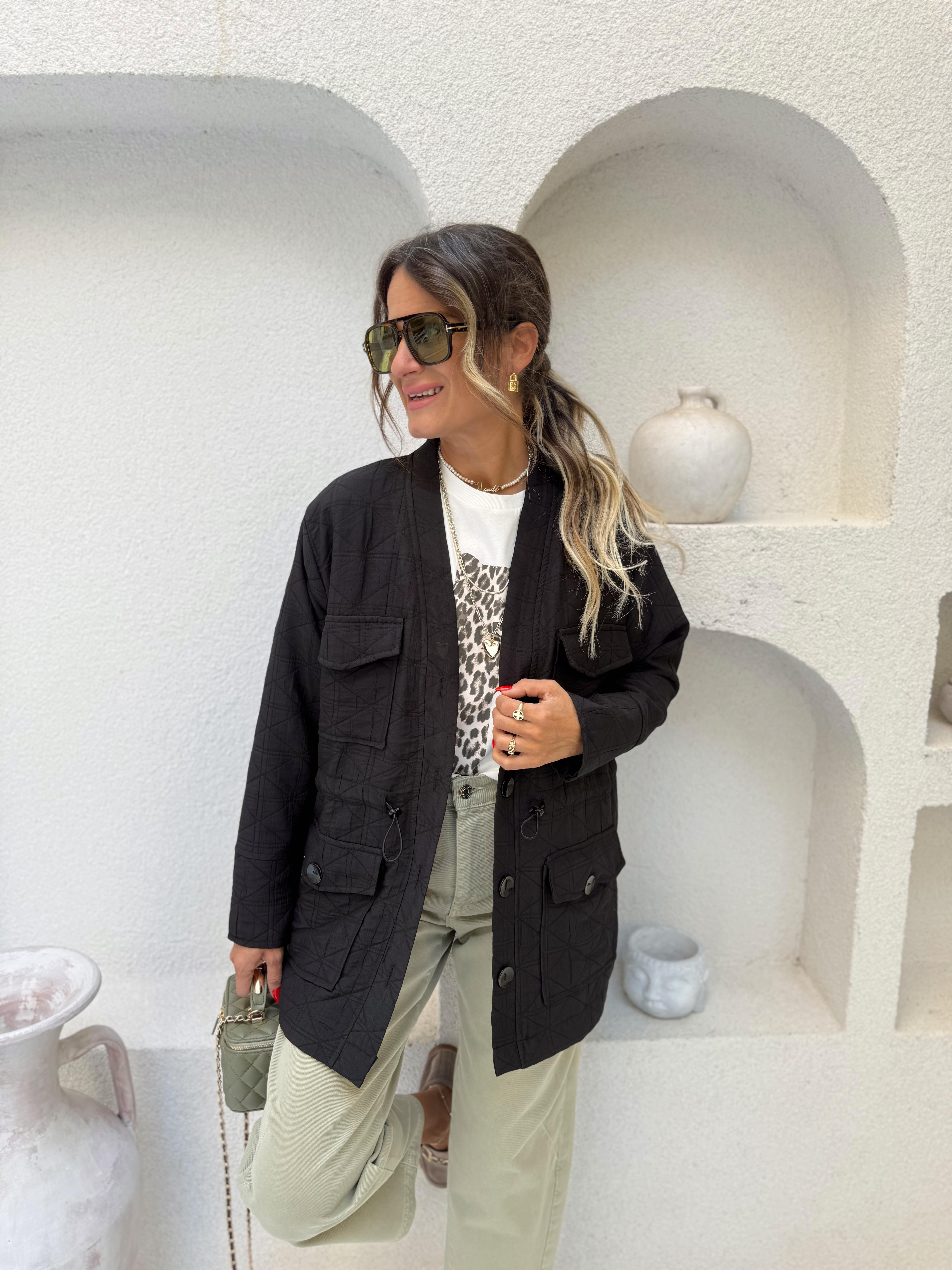 Nişantaşı Butik BEL BUZGU DETAY V YAKA KAPİTONE CEKET SİYAH