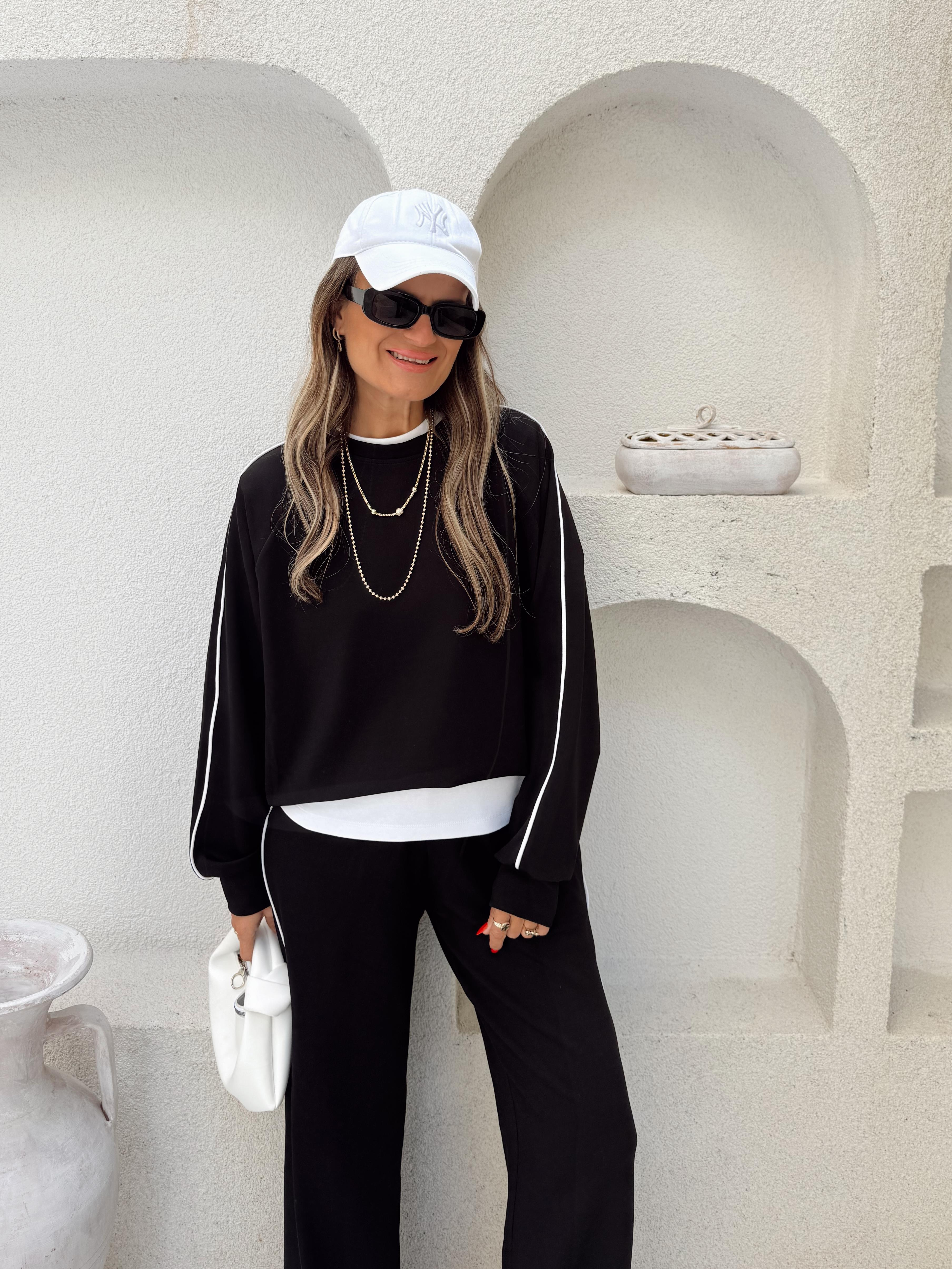 Nişantaşı Butik BEYAZ BİYE ŞERİTLİ SWEAT BASİC