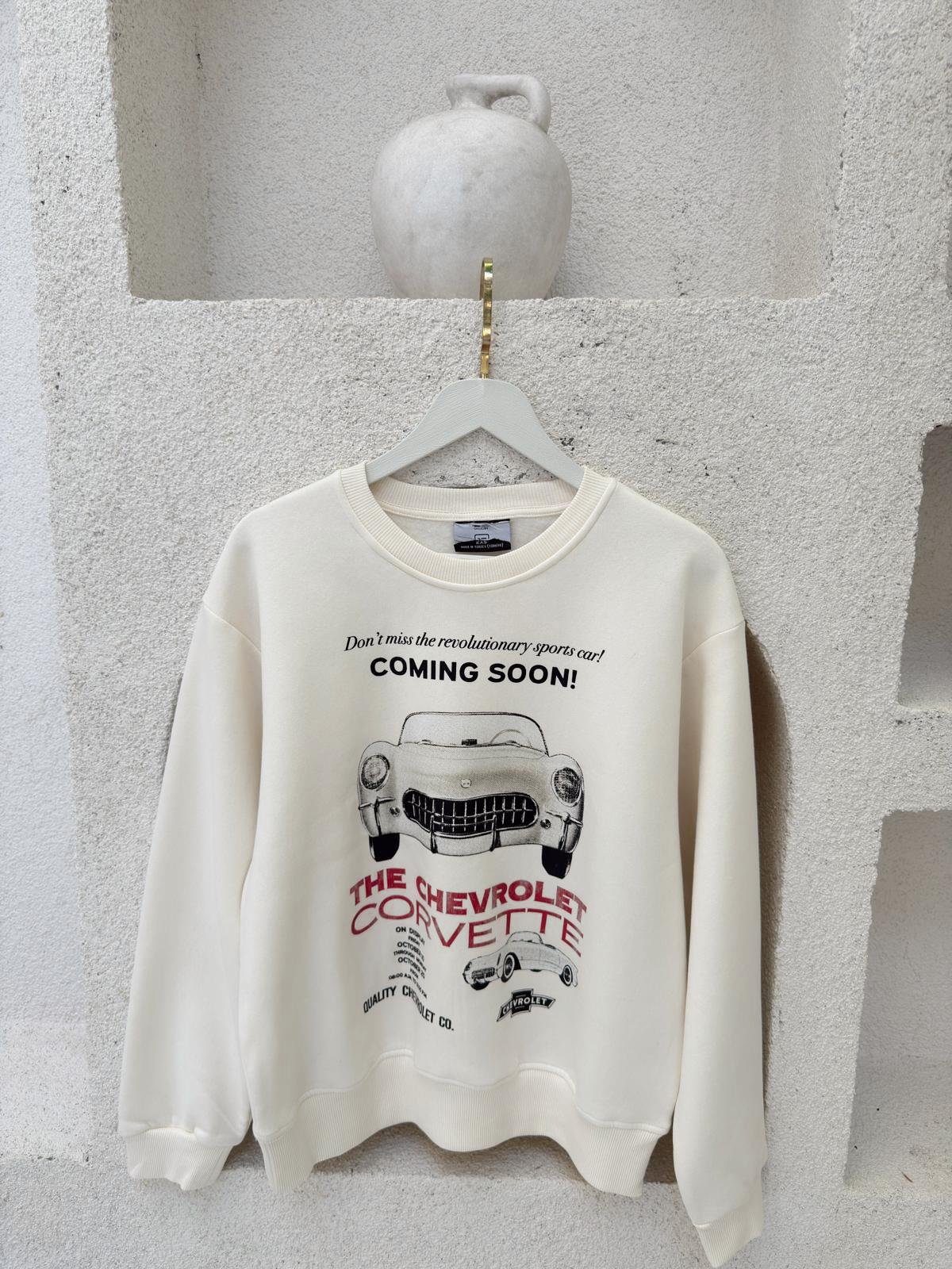 CATLATMA BASKI DETAY SARDONLU EKRU SWEATSHİRT (SWT5555)