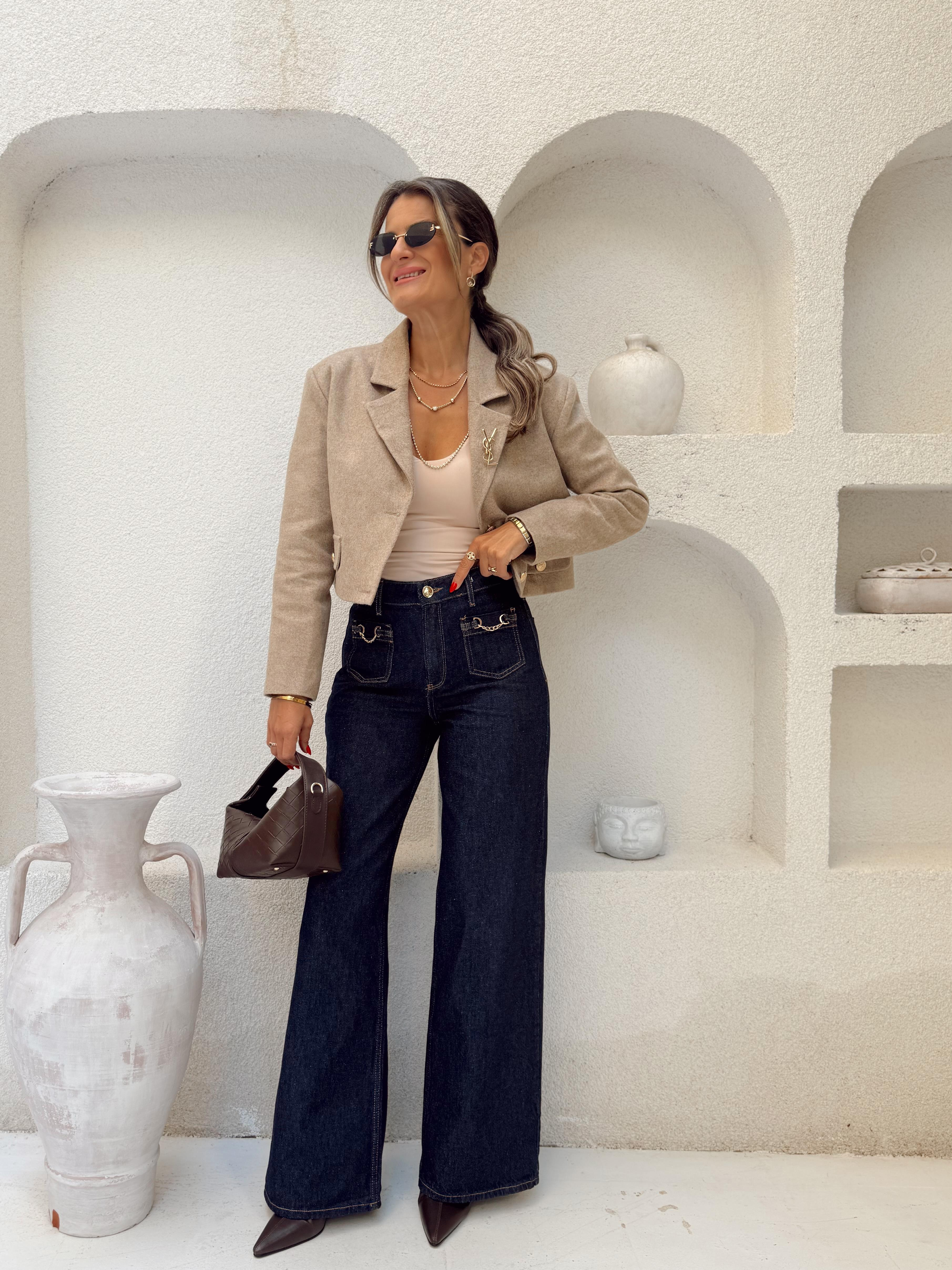 Nişantaşı Butik CEP ZİNCİR DETAY STRAİGHT KONTRAST JEAN