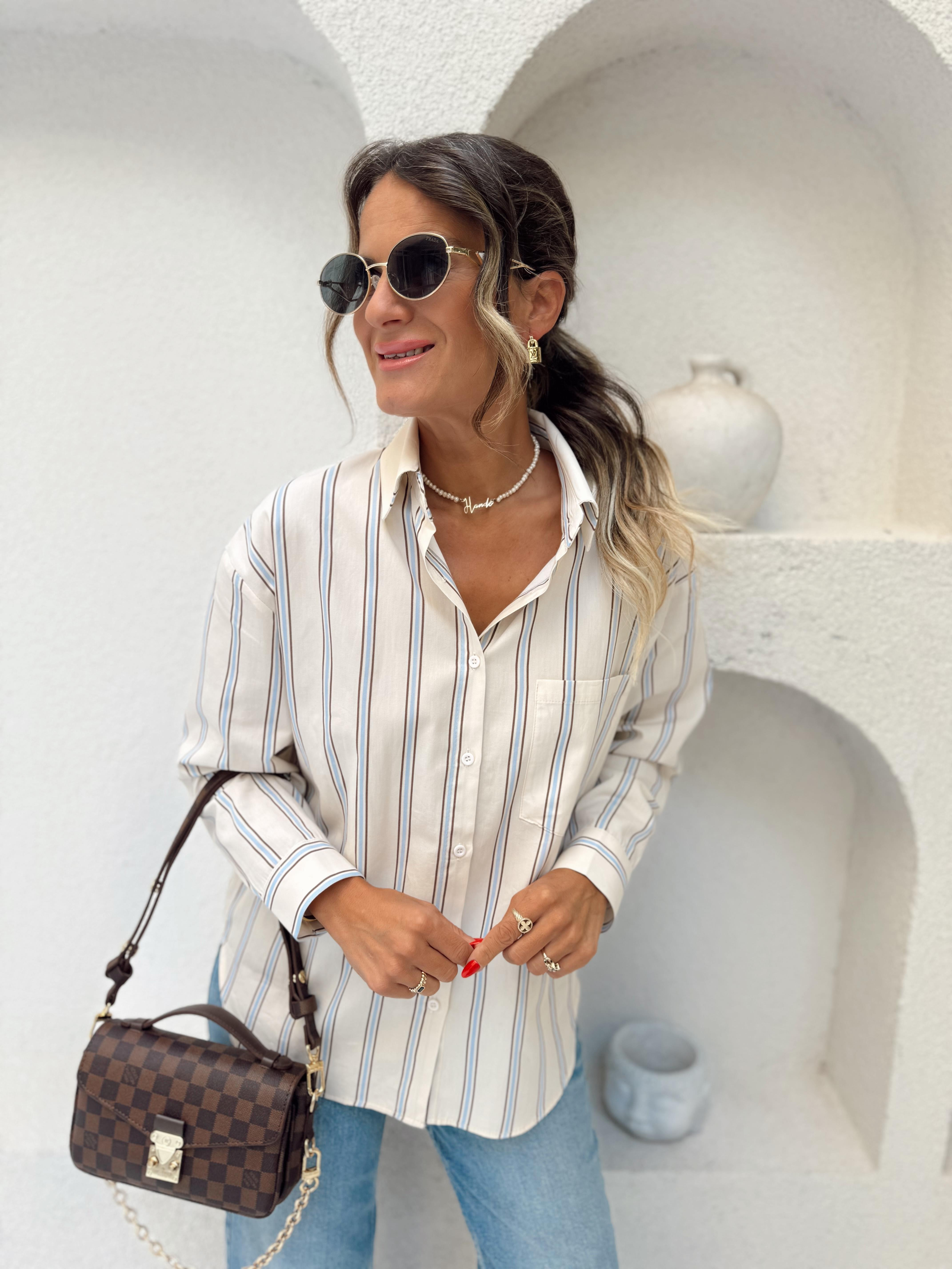 Nişantaşı Butik ÇİZGİLİ KAHVE MAVİ GÖMLEK