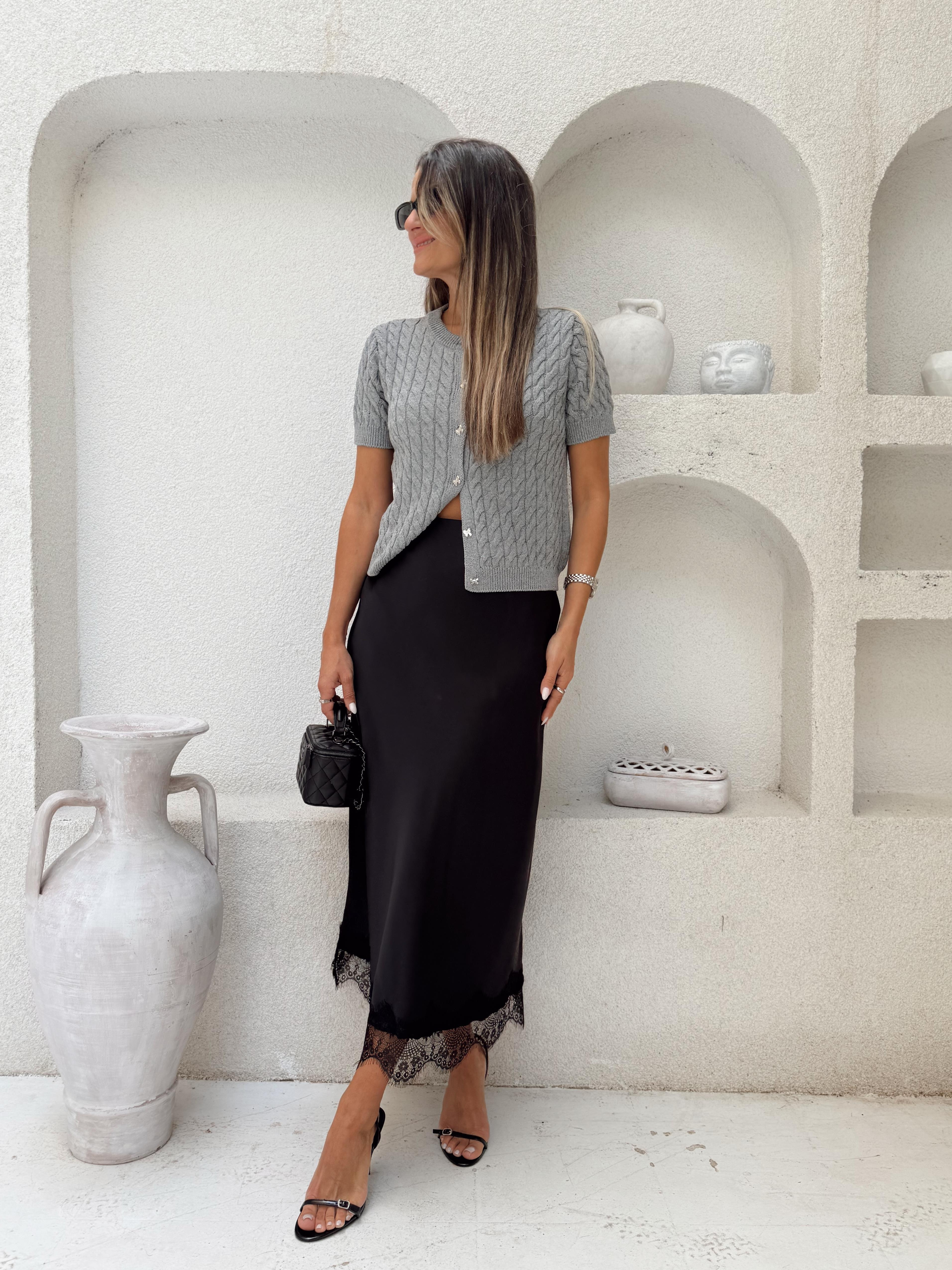 Nişantaşı Butik DANTEL DETAY SATEN ETEK SİYAH