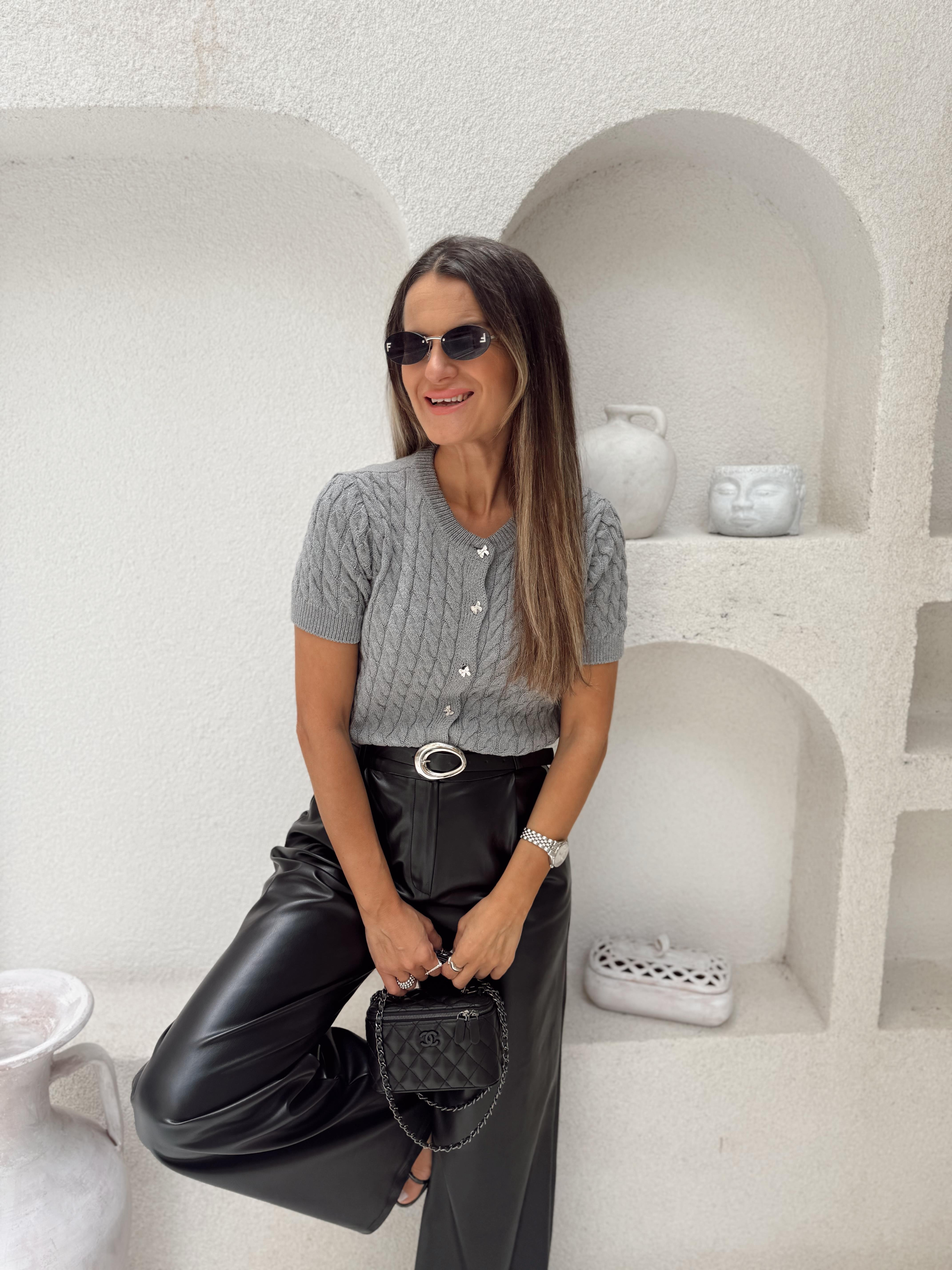 Nişantaşı Butik FİYONK DÜĞME MOTİFLİ TRİKO CEKET GRİ
