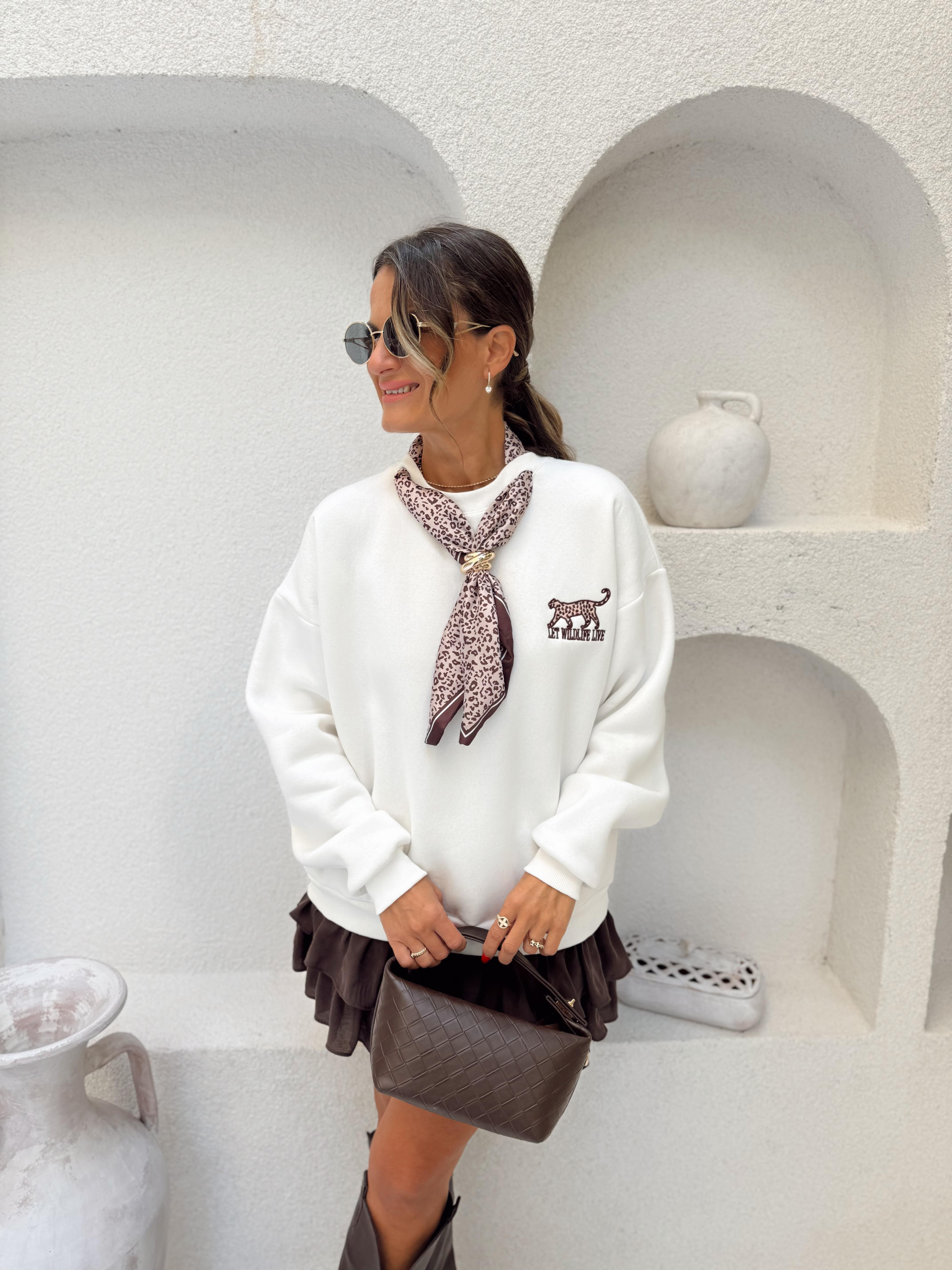 Nişantaşı Butik FULAR DETAY NAKIŞ İŞLEME SWEATSHİRT  BEYAZ