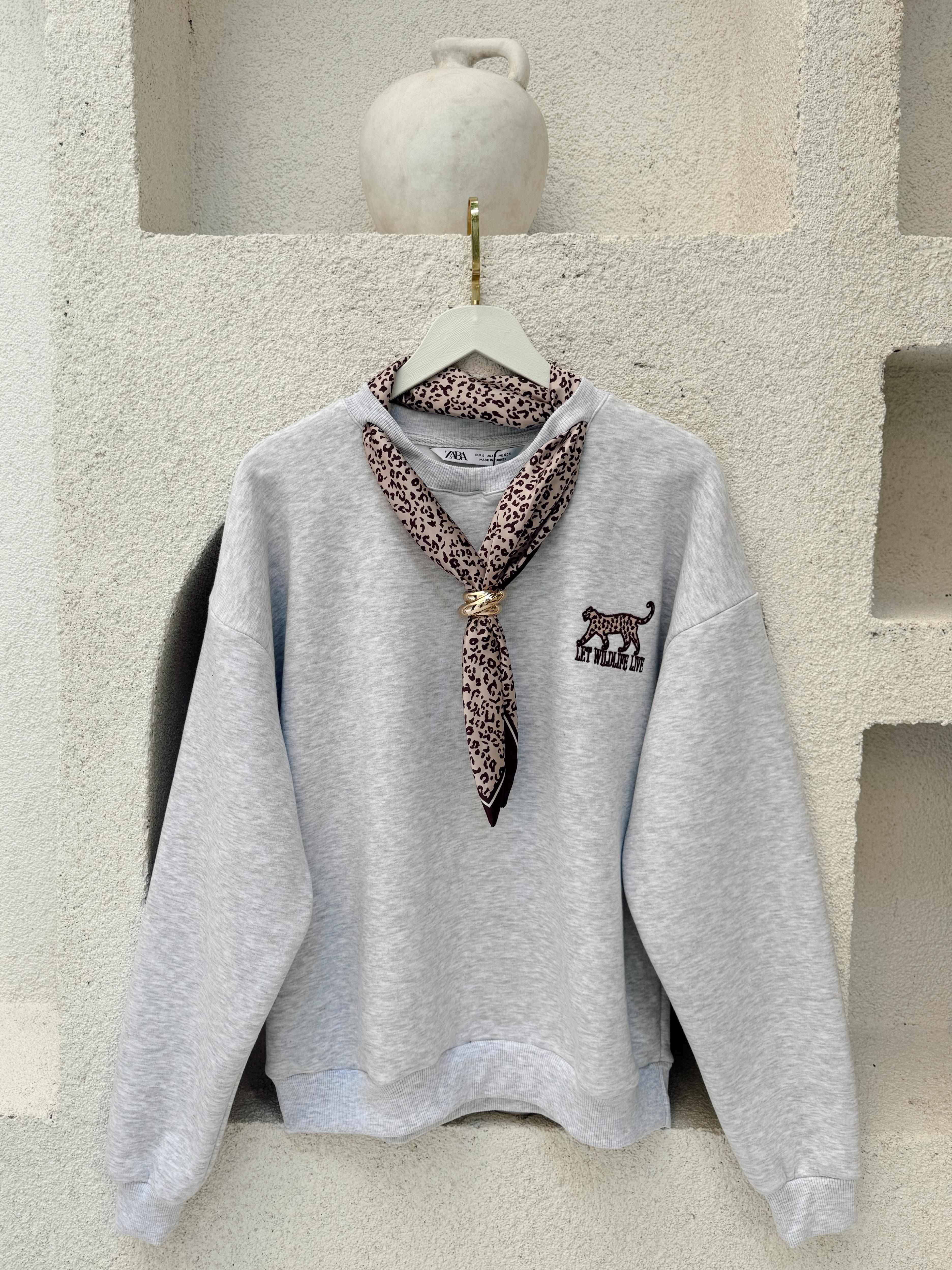Nişantaşı Butik FULAR DETAY NAKIŞ İŞLEME SWEATSHİRT GRİ