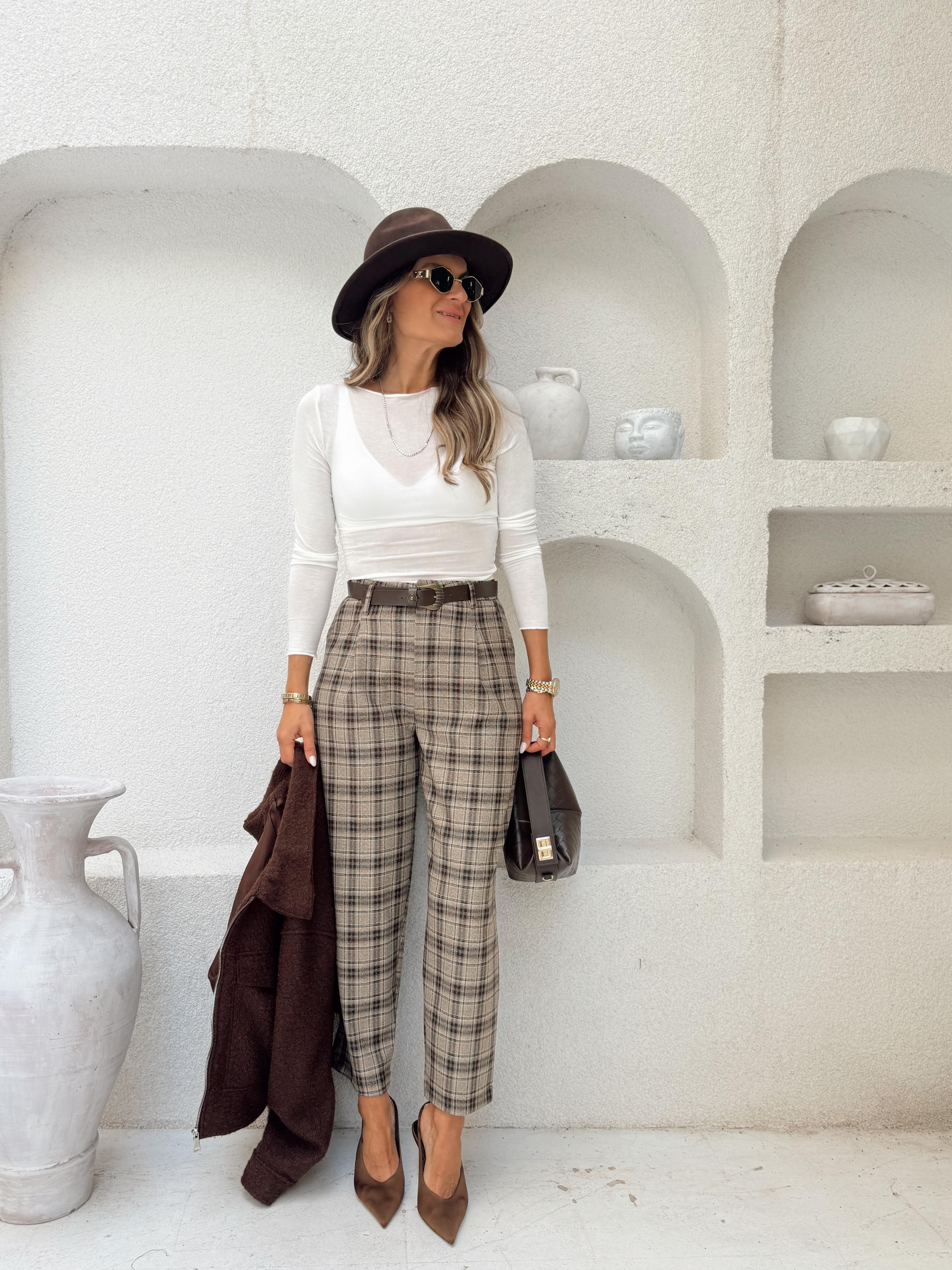 Nişantaşı Butik KEMER DETAY EKOSE KUMAS PANTOLON