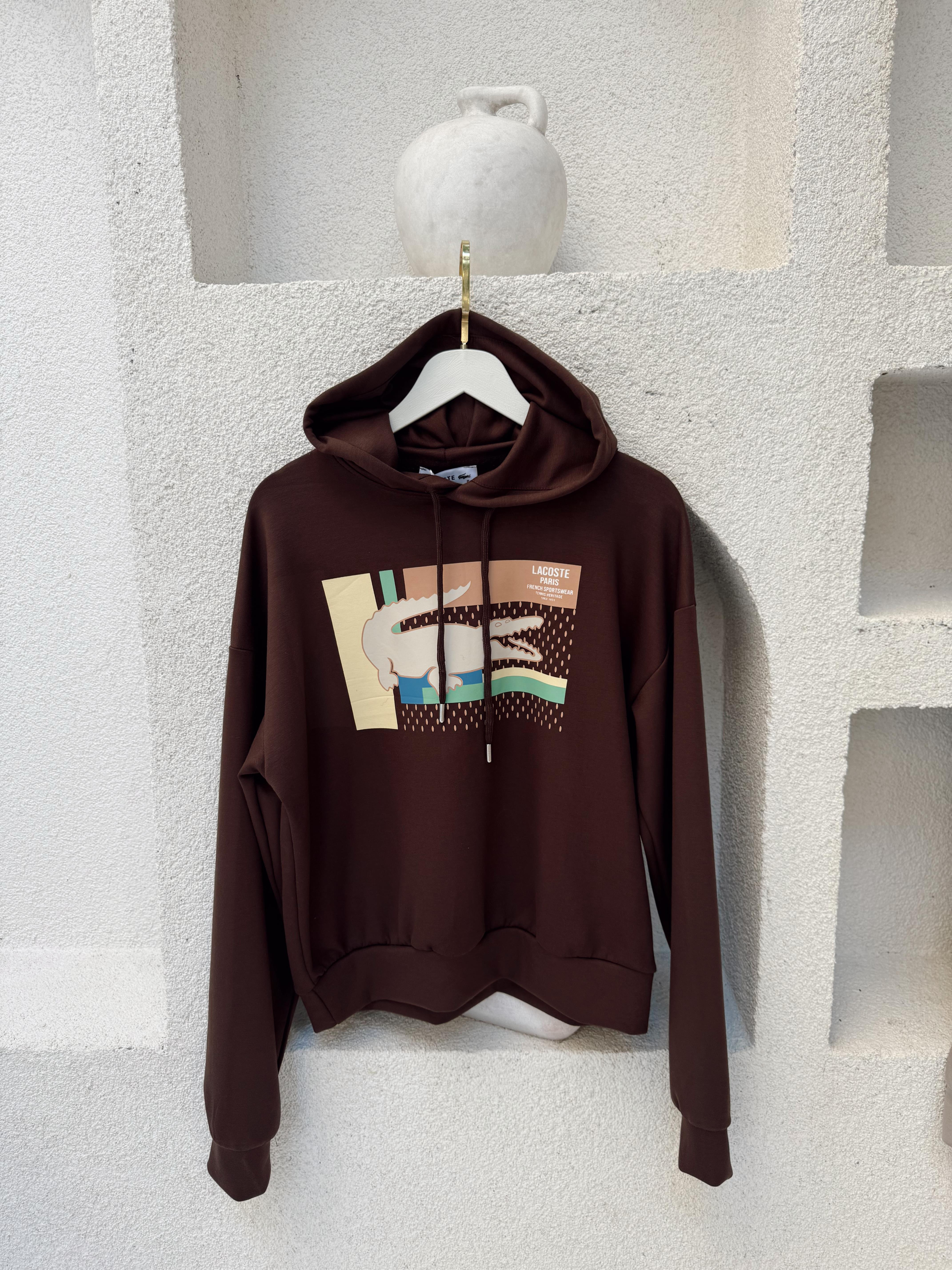 Nişantaşı Butik LAZER BASKI KAPSONLU MODAL SWEATSHİRT KAHVERENGİ