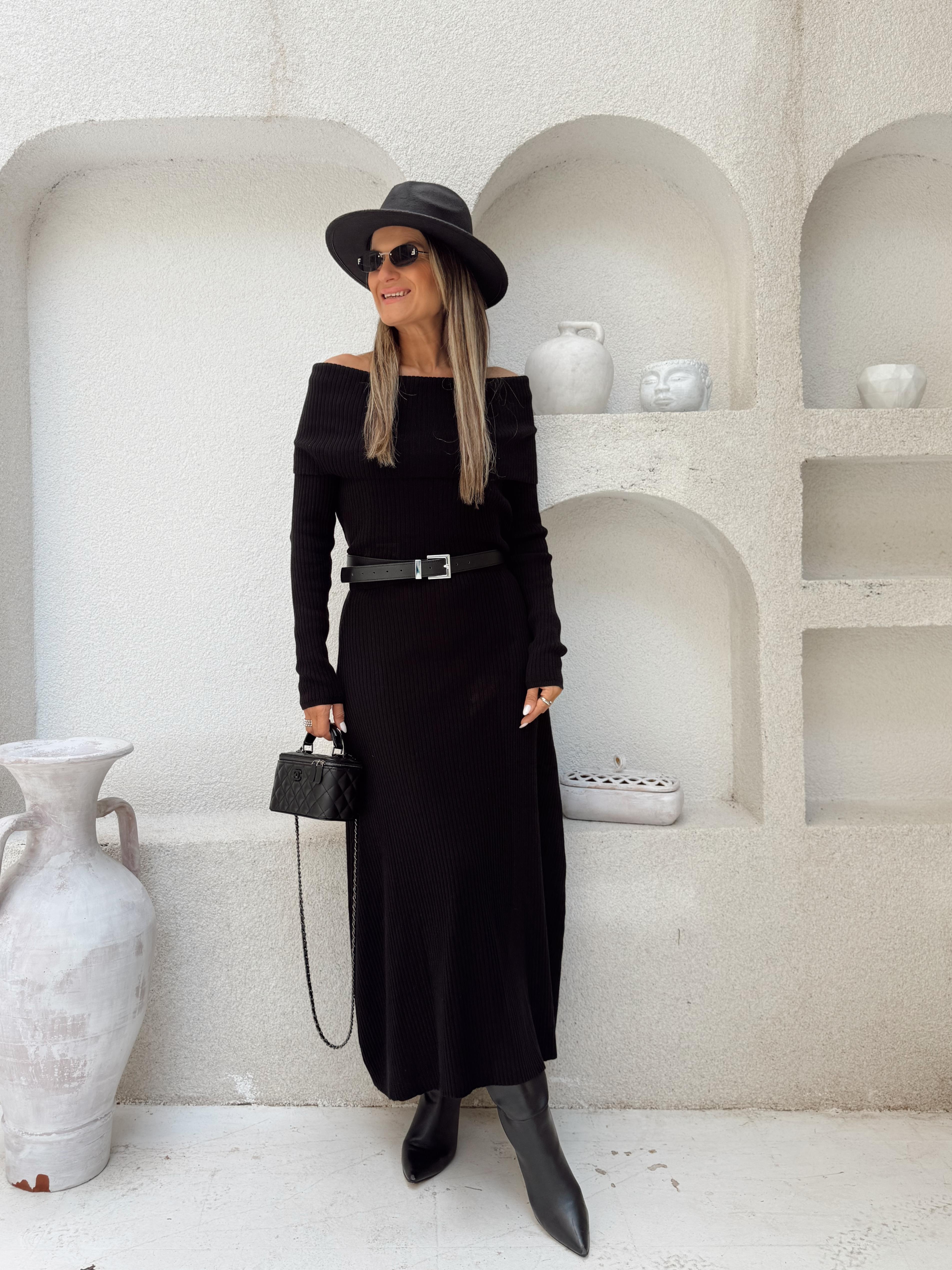 Nişantaşı Butik MADONNA YAKA ETEK BLUZ TRİKO TAKIM SİYAH