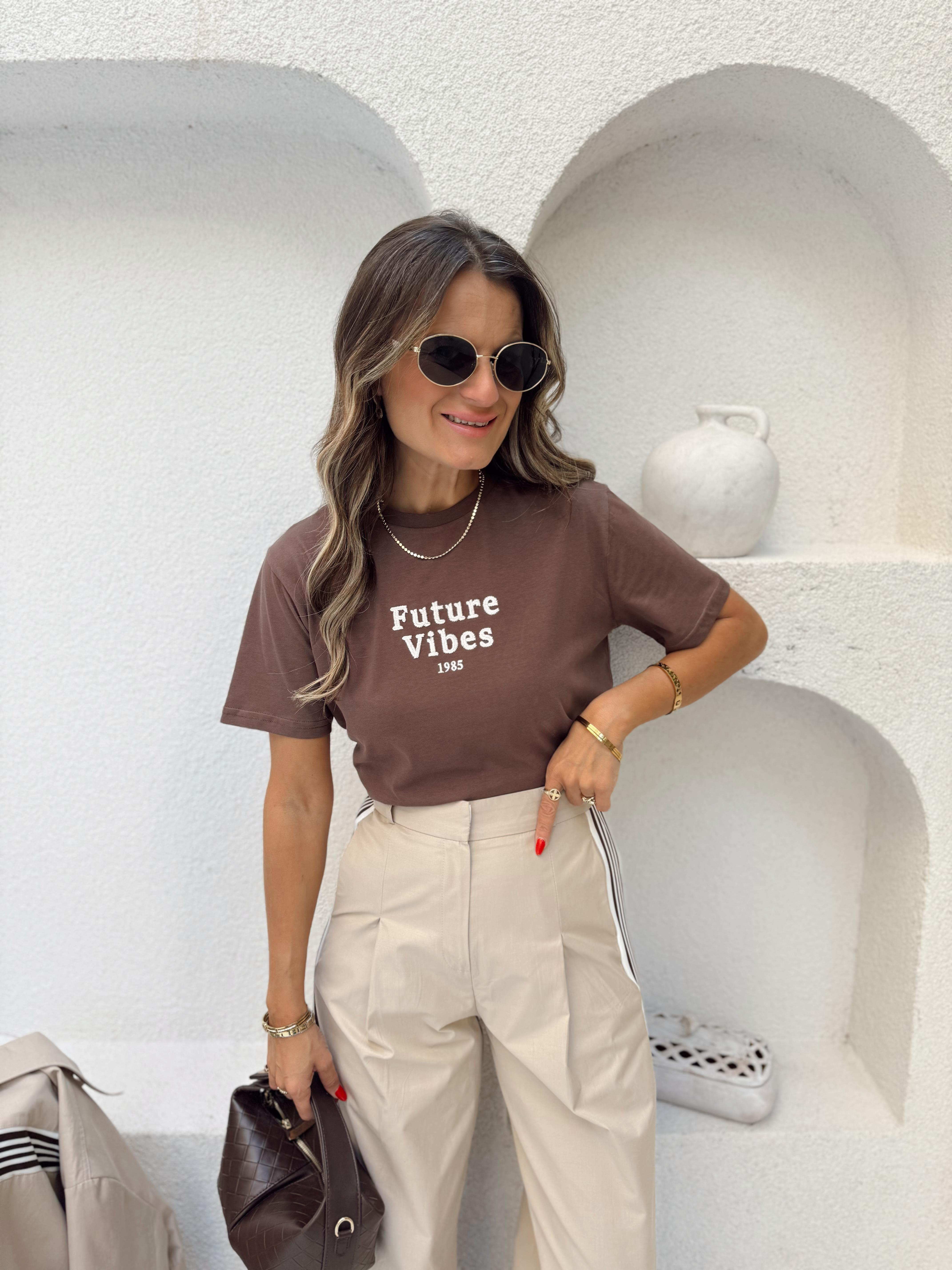 Nişantaşı Butik NAKISLI YAZI DETAY KAHVERENGİ TSHİRT