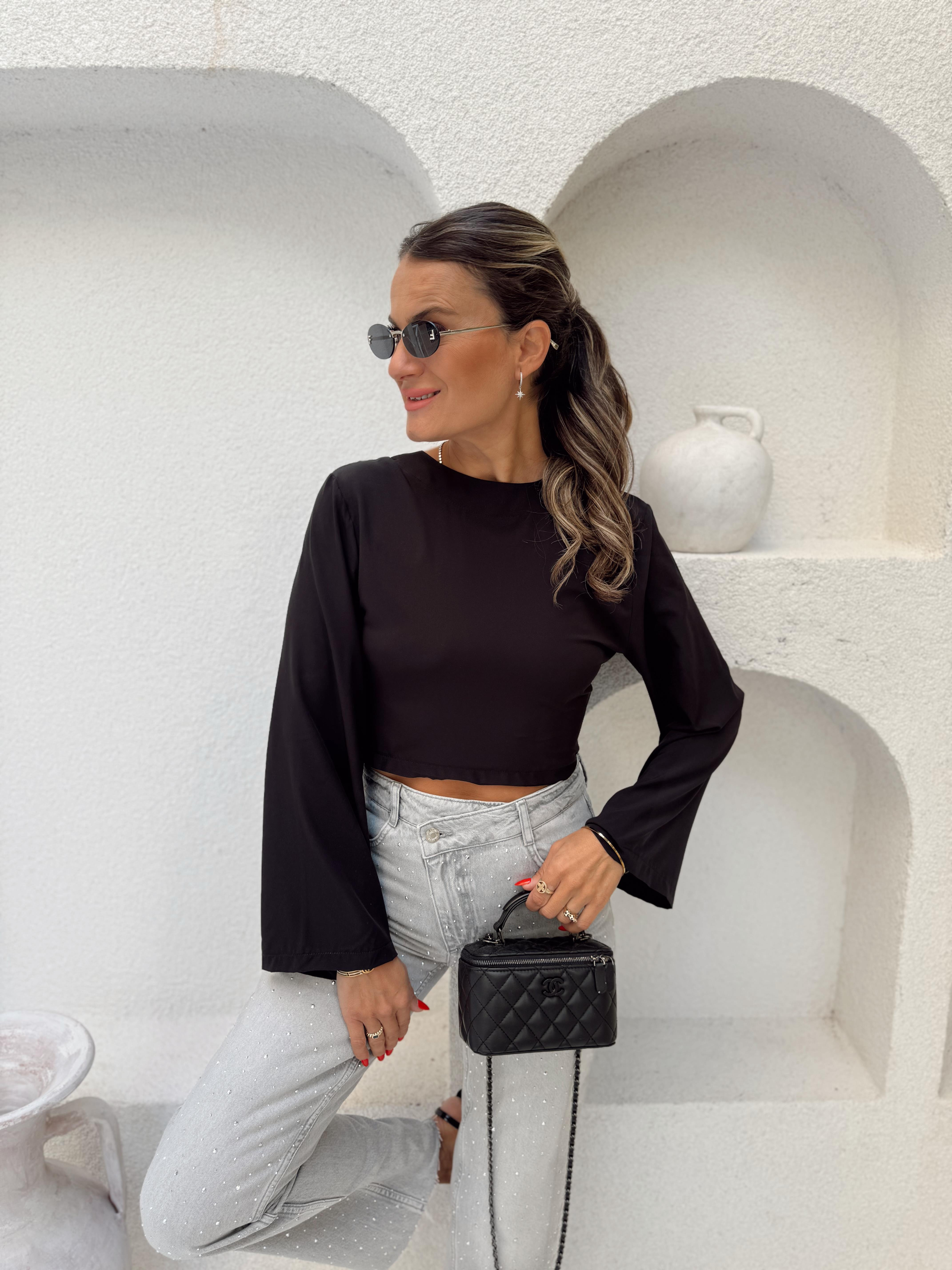 SIRT VE KOL DETAY SİYAH BLUZ (BLZ333)