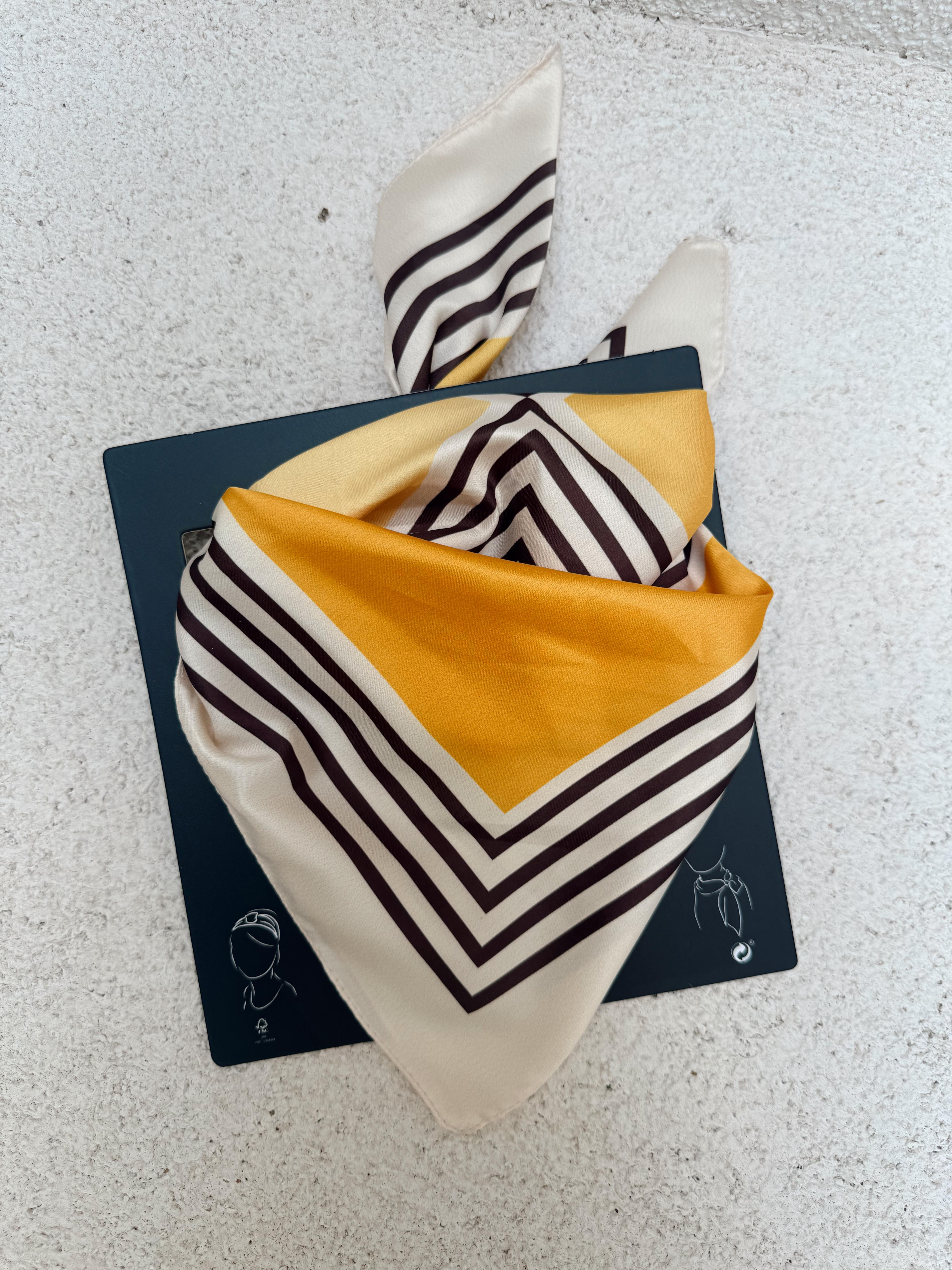 Nişantaşı Butik SİYAH BEJ ÇİZGİ DESENLİ FULAR