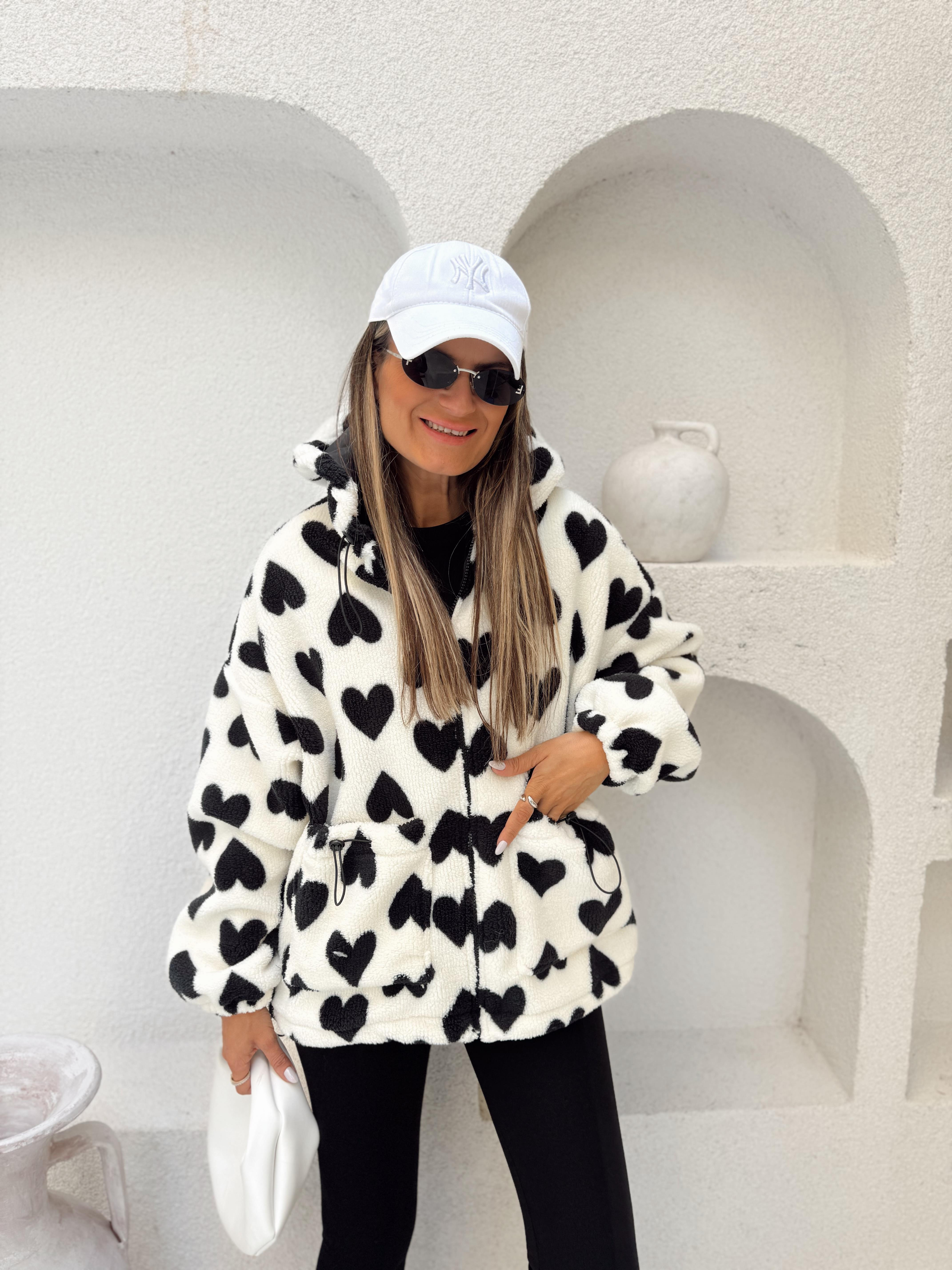 SİYAH KALP DESEN ASTARLI PELUS CEKET EKRU (CK00005)