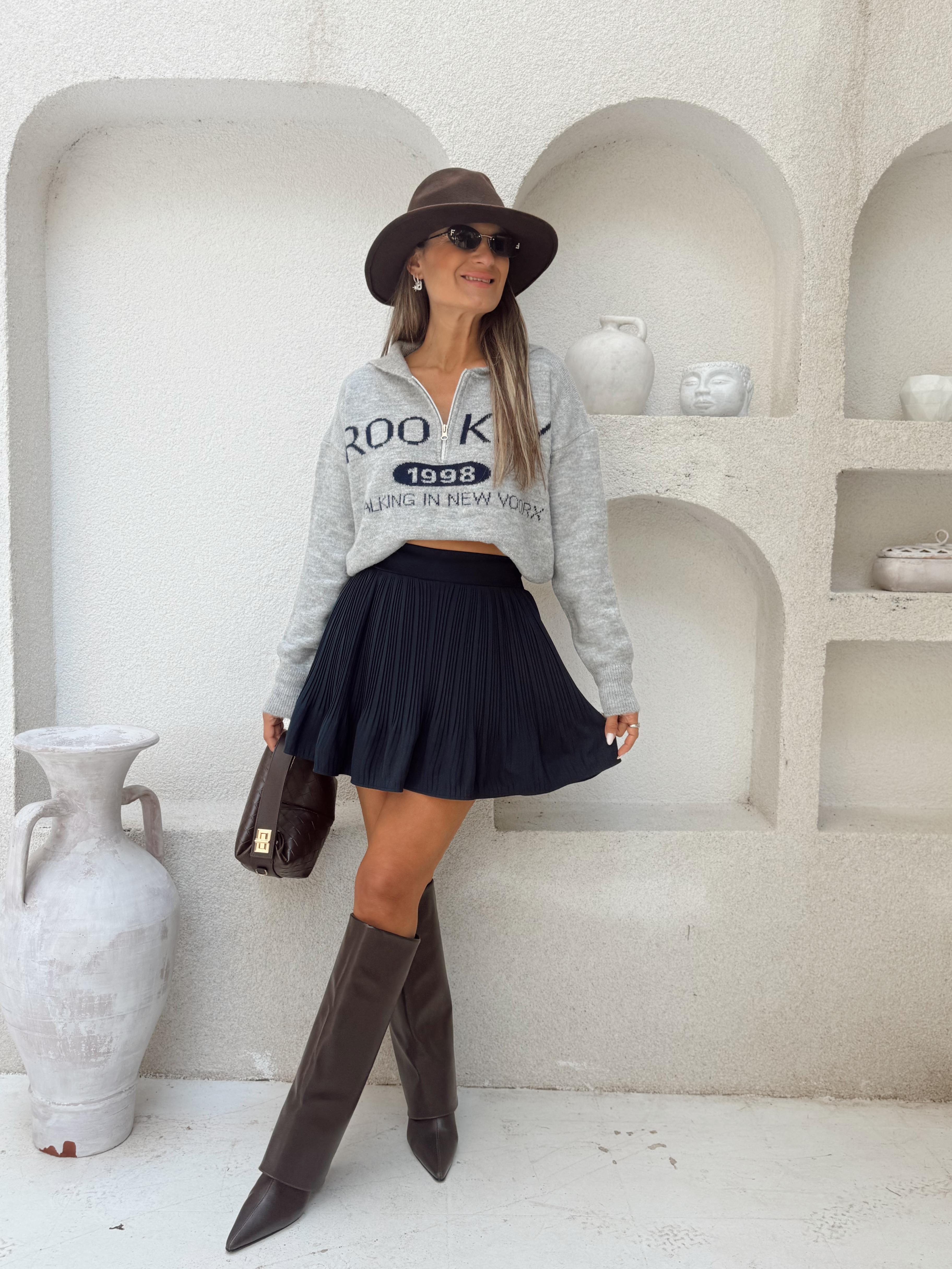 Nişantaşı Butik ŞORT ASTARLI LACİVERT PİLİSELİ ETEK
