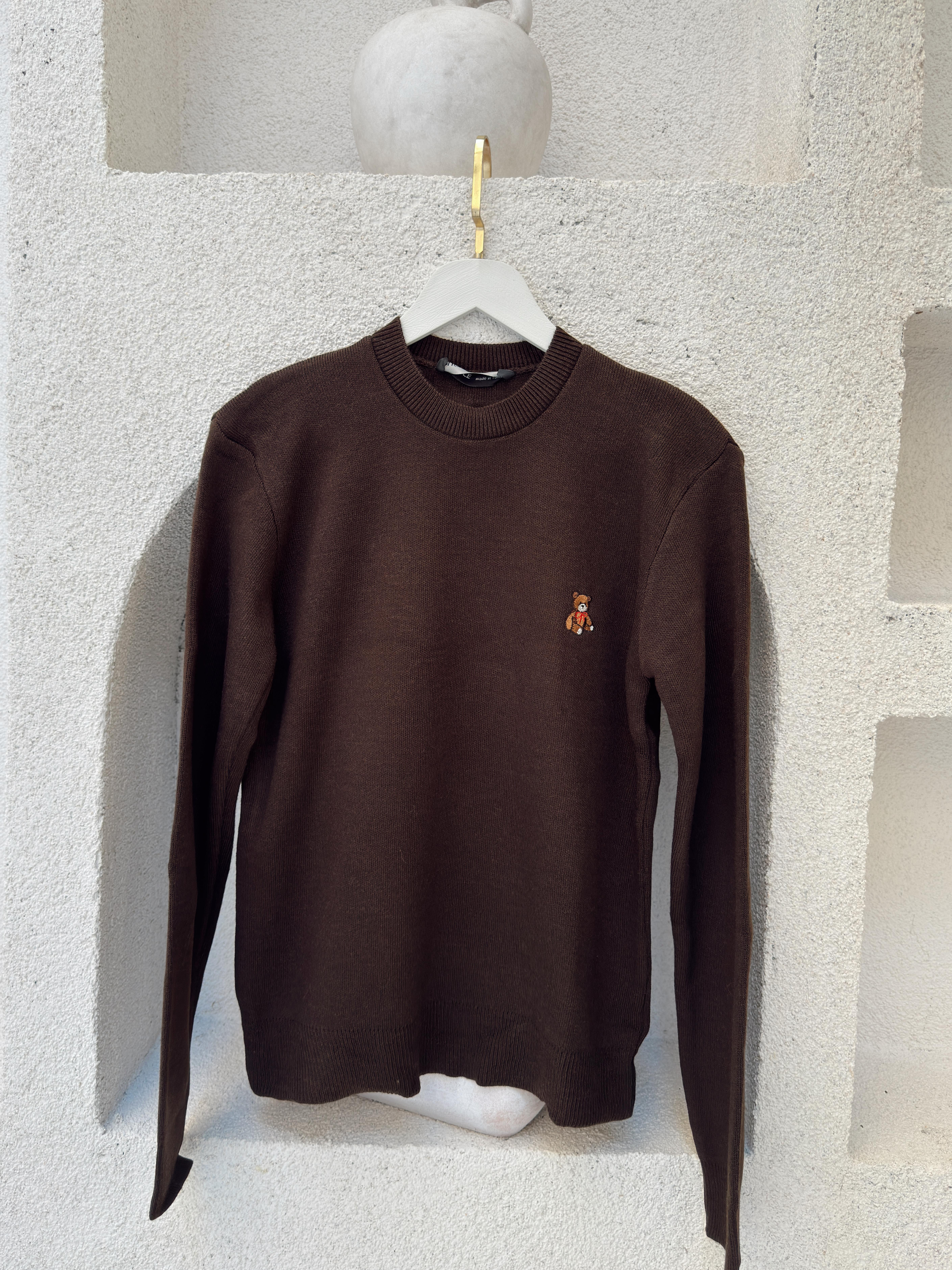 Nişantaşı Butik TEDDY NAKIS TRİKO KAZAK KAHVERENGİ