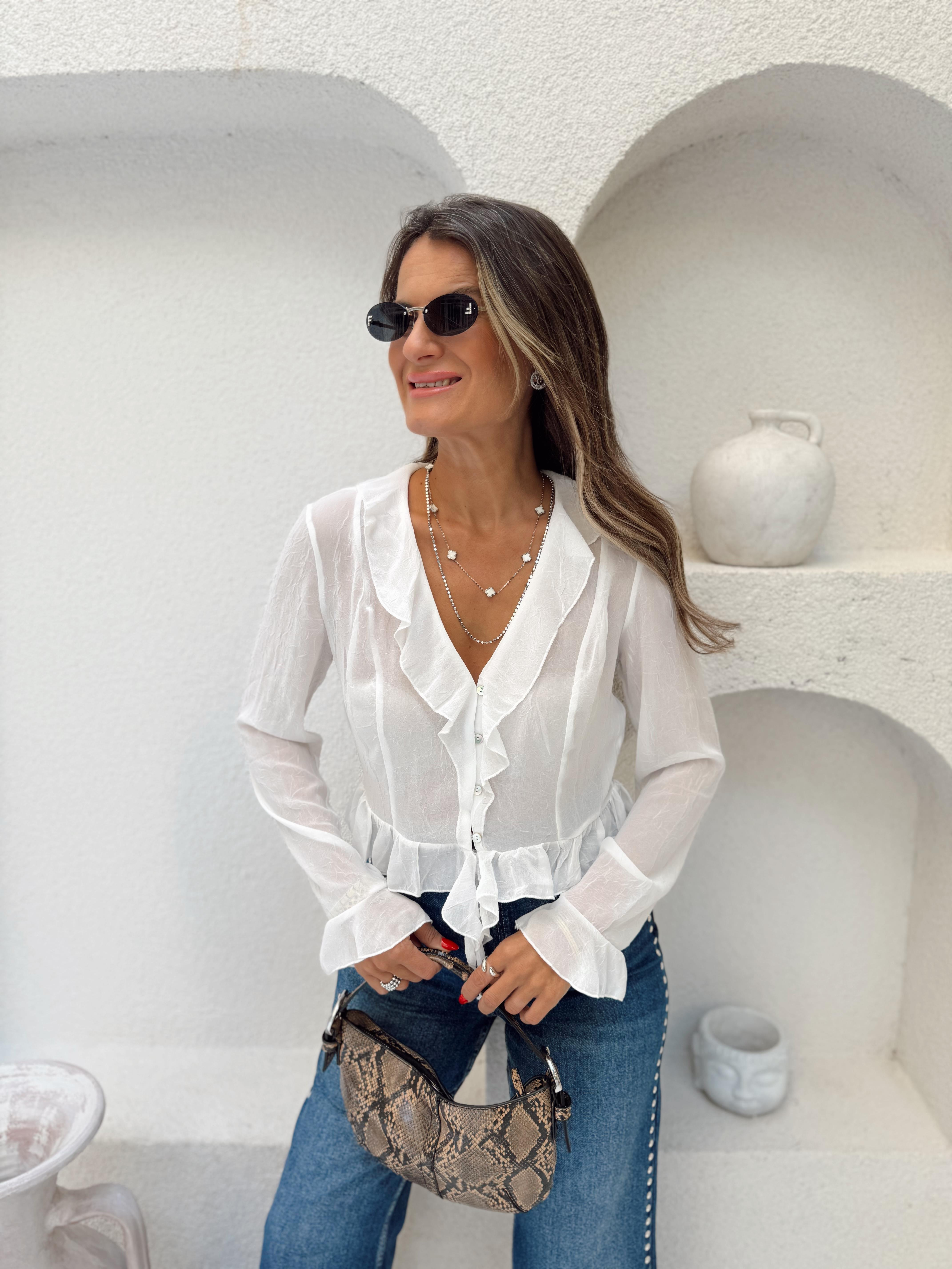 VOLAN DETAY BEYAZ GÖMLEK BLUZ (GMLK2222)