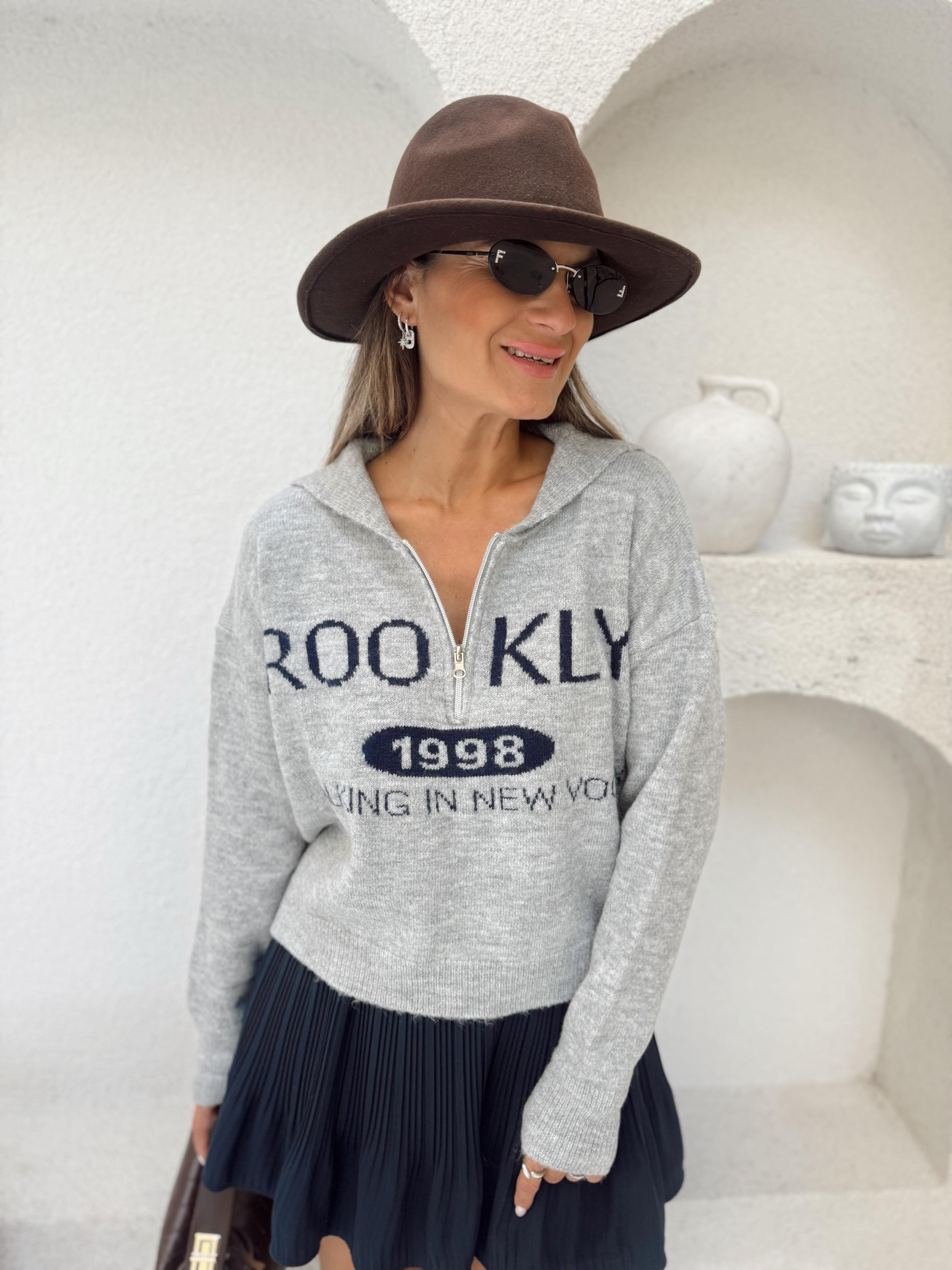 Nişantaşı Butik YAZI DETAY FERMUARLI KAZAK